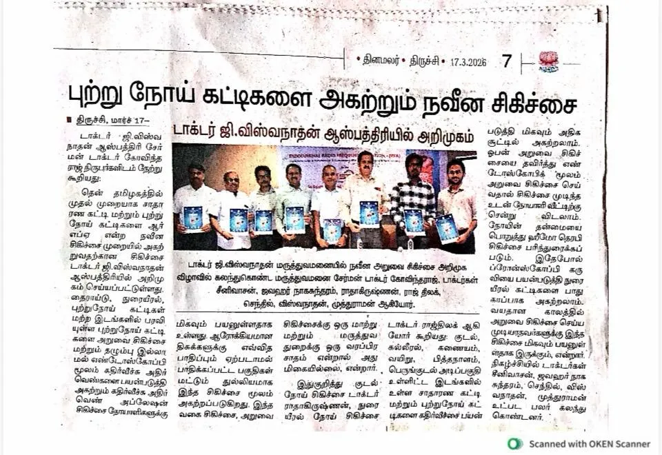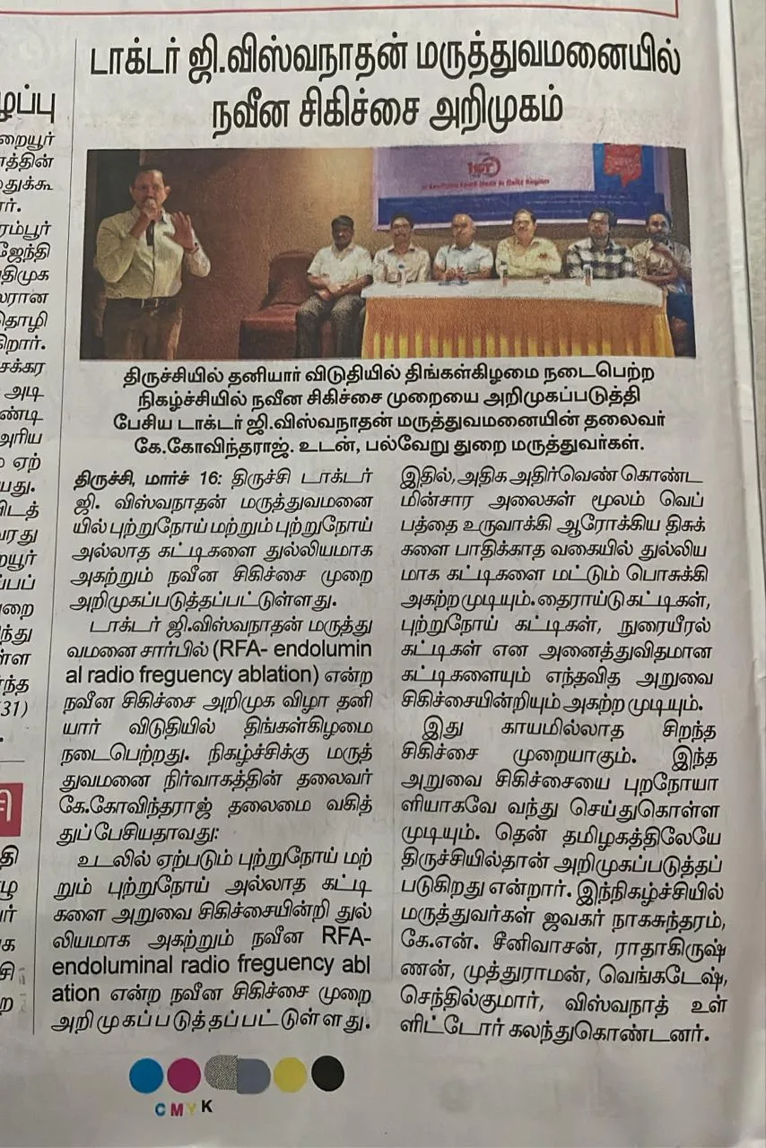 A new advanced treatment called RFA (Radio Frequency Ablation) has been introduced at Dr. G. Viswanathan Hospital, Trichy.